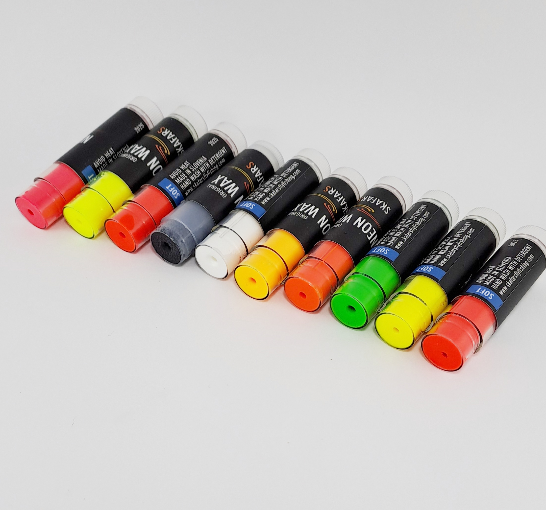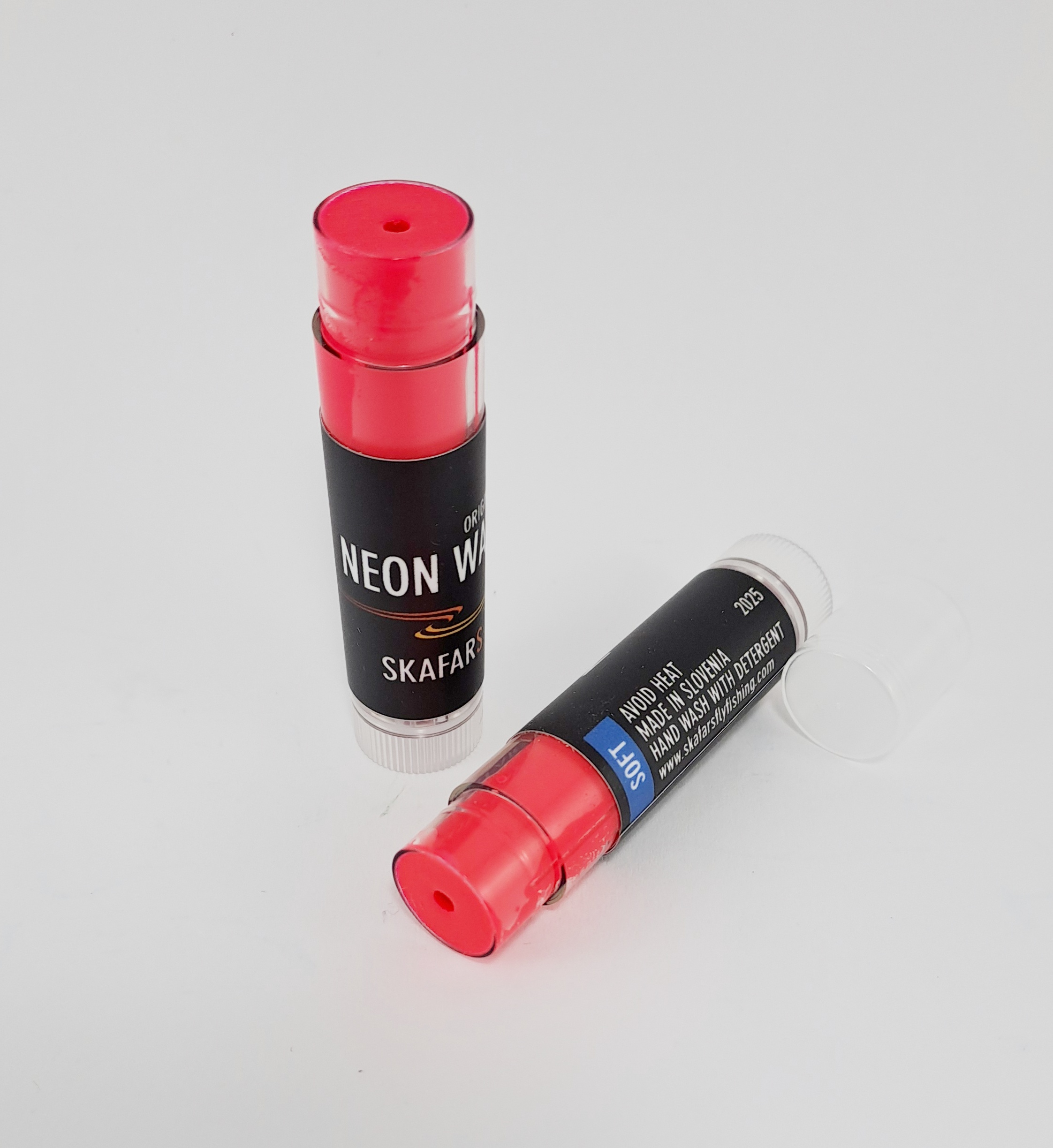 Skafars Neon Wax is a soft wax you can apply to your sighter material or to any tippet to make your indicator more visible. Lip stick style dispenser can be easily adjusted and wax applied in a dabbing motion onto leaders or strike indicator material and smoothed into position between fingers .
