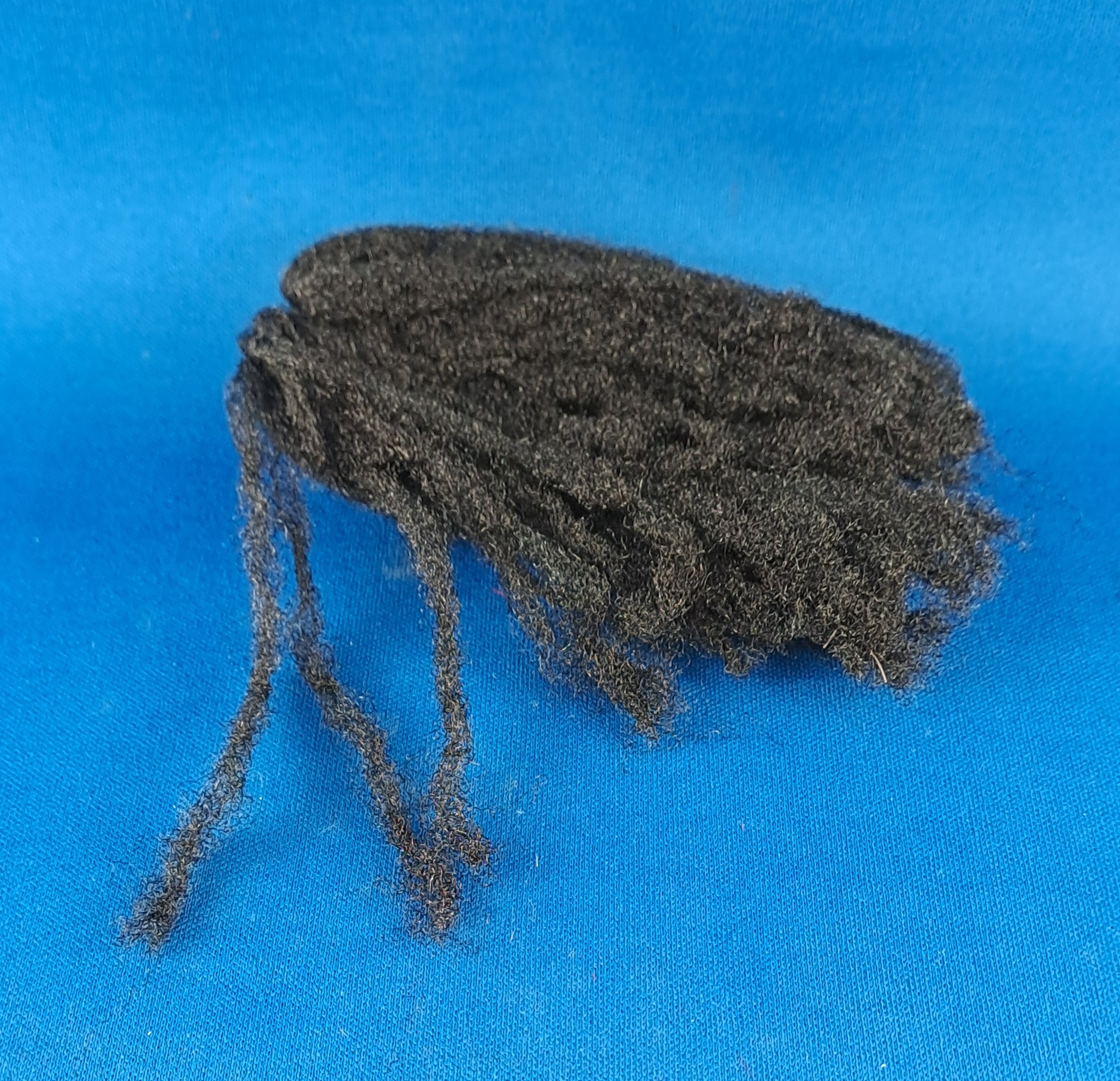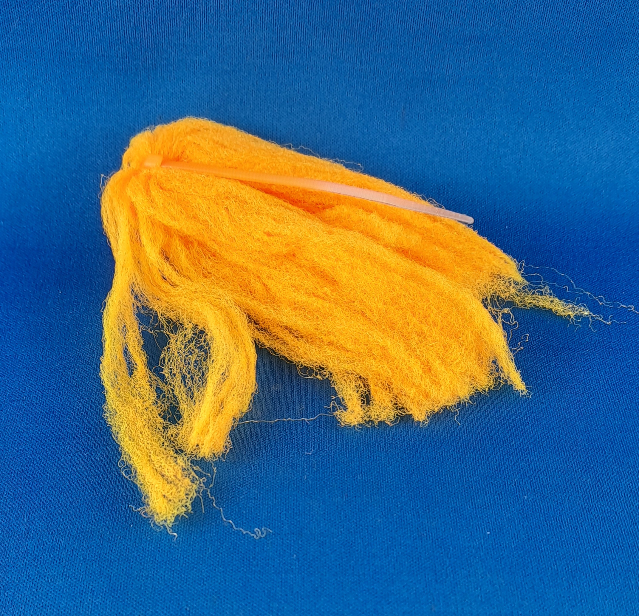 TIP: Comb the material to separate the fibers. Fold together to create a wing shape and tie in as a post . Can also be used to create a wing case effect
